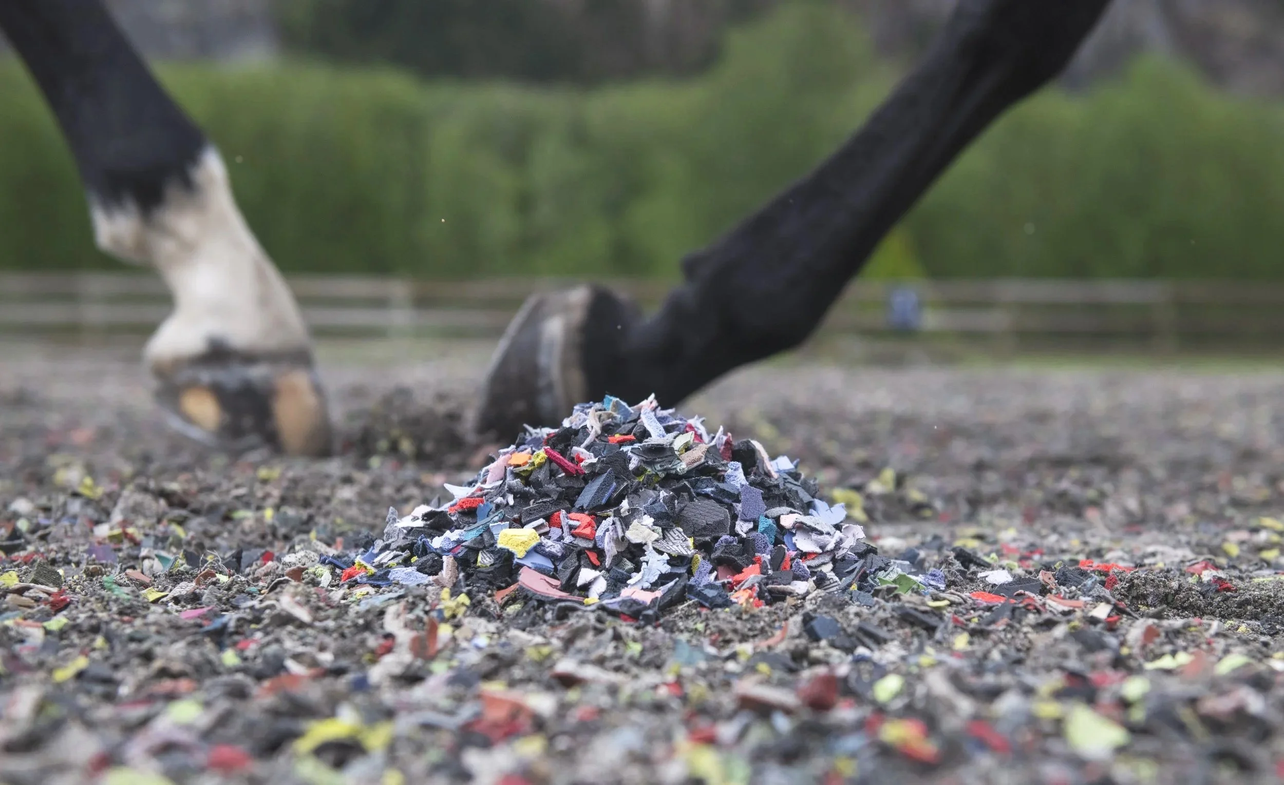 ReitenRight particles work into areas of compaction to break them up and provide compressible space. This can be helpful for various arenas including fiber arenas to reduce packing and hard spots.